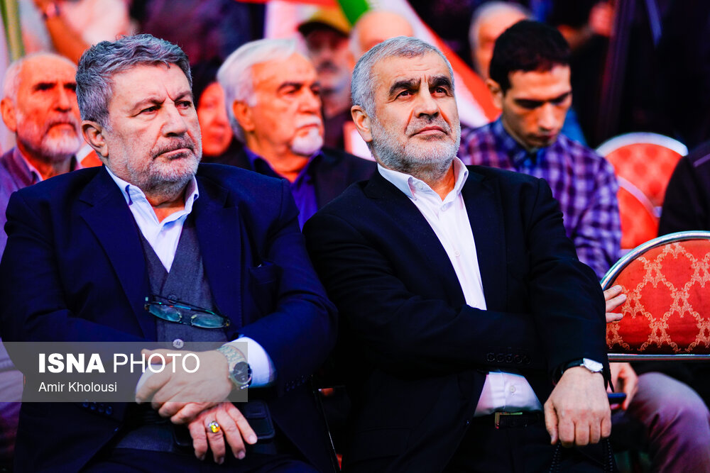 • سرتیپ پاسدار حسین نجات و غلامعلی حدادعادل در مراسم چهلم جانباختگان ناآرامی‌های دی ماه